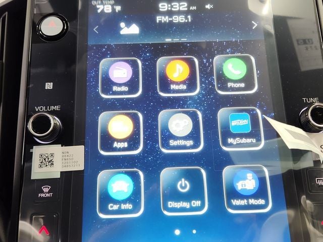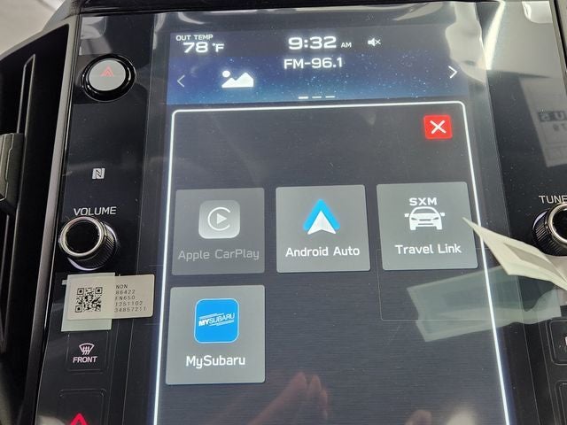 - Radio: Subaru STARLINK 11.6" Multimedia Plus Sys -inc: valet mode, AM/FM stereo, HD Radio, multi-touch gesture high resolution display screen, voice activated controls, Bluetooth® audio streaming and hands-free phone connectivity, Bluetooth® hands-free SMS text messaging connectivity, iPod control capability, SiriusXM w/360L (4 months free trial/subscription required after), SiriusXM Travel Link (4 months free trial/subscription required after), smartphone integration: Android Auto w/full screen view and wireless connection, Apple CarPlay w/full screen view and wireless connection, USB and Over The Air (OTA) audio system update, audio system and Buletooth steering wheel control switches, 6 speakers, illuminated 3.5mm auxiliary input jack, illuminated USB A and C input charge ports, roof mounted black antenna and satellite connected services