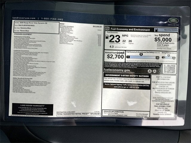 2026 Land Rover Range Rover Velar Dynamic SE